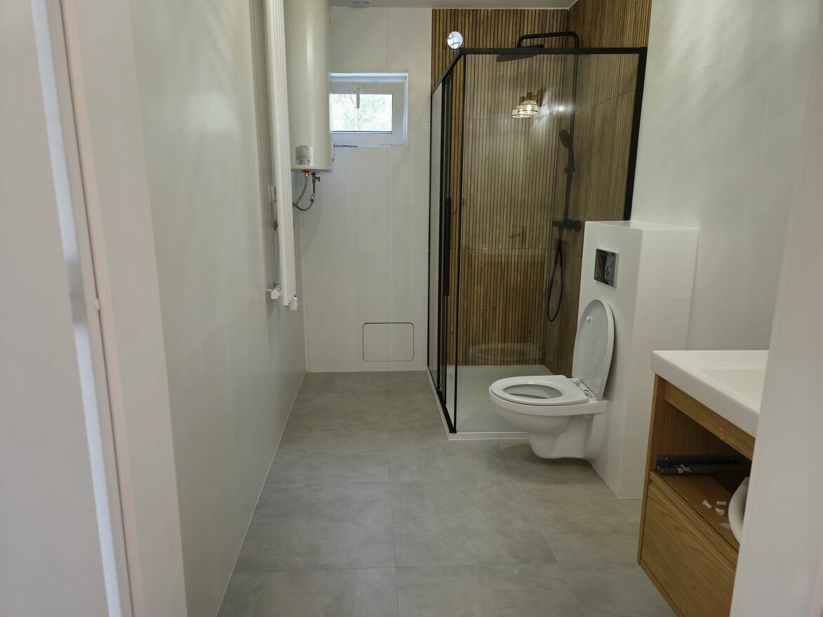 Dom wykończony w panelach + gres w łazience