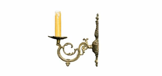 Zabytkowy mosiężny kinkiet elektryczny ( gwint E14 ) długość rozety 24 cm szerokość rozety 6 cm głębokość od ...